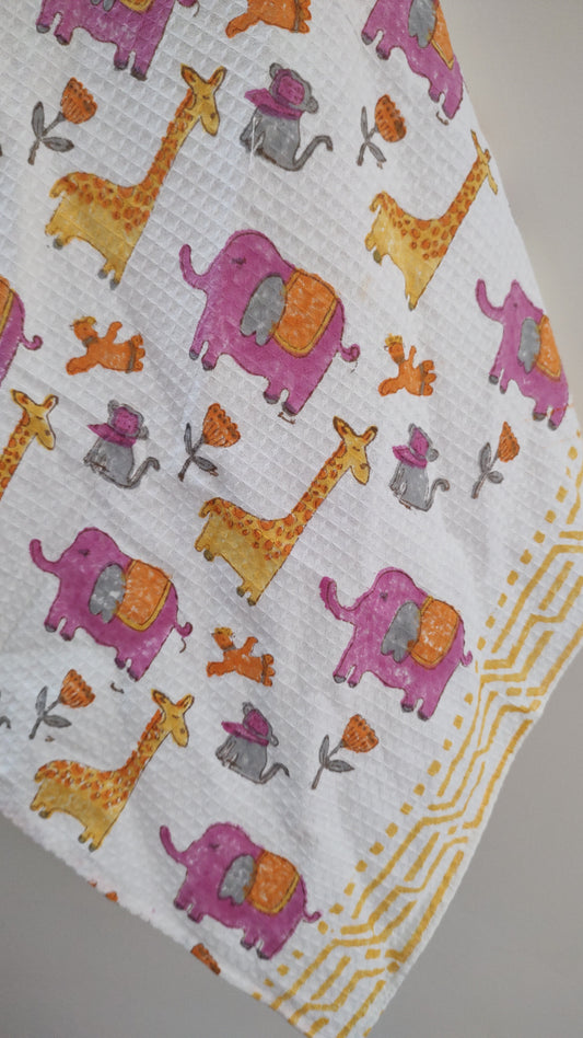 Animal Block Printed Bath Towels