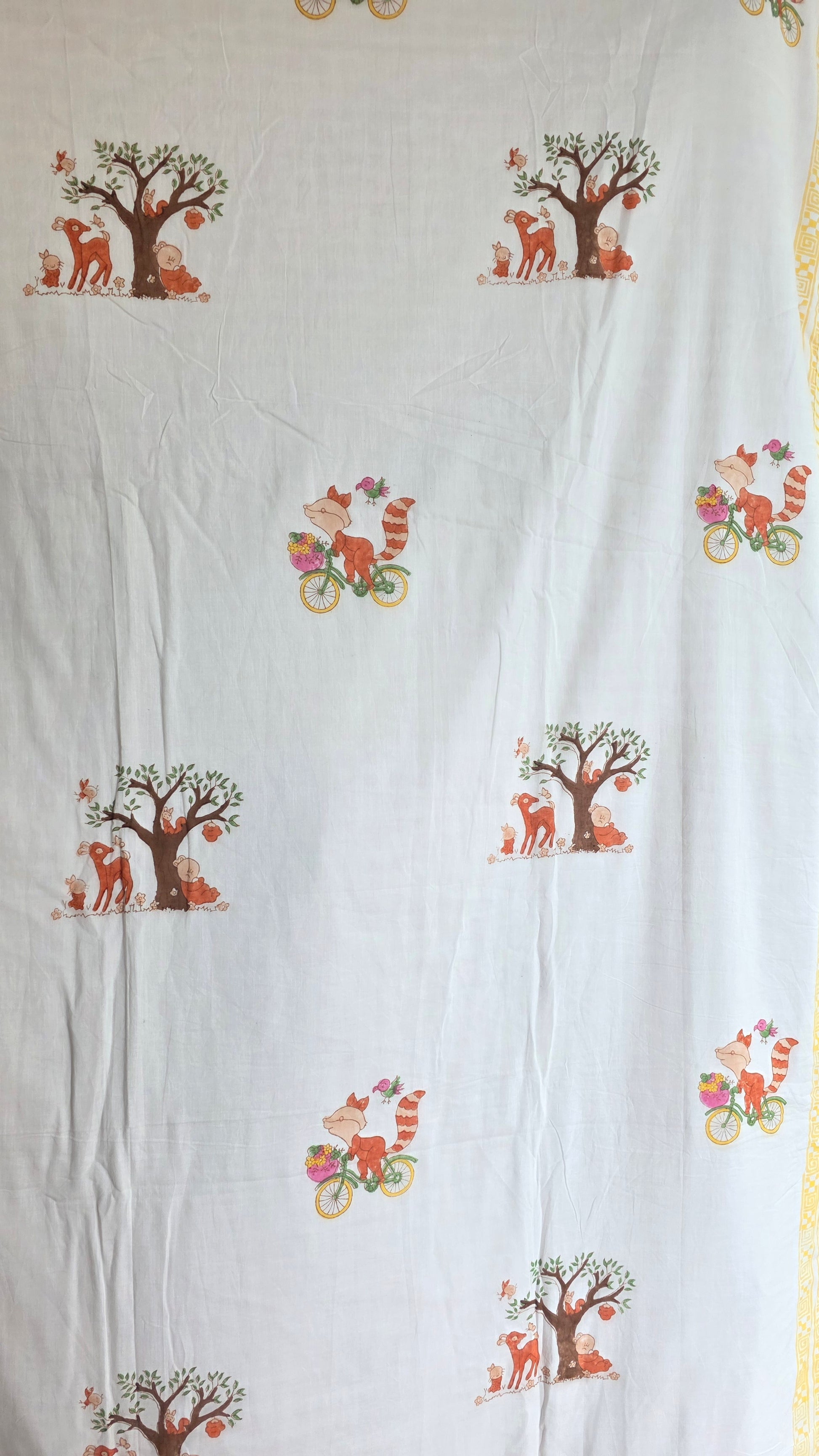 This adorable reversible dohar is made with pure mulmul cotton and features hand block prints in vibrant colors.