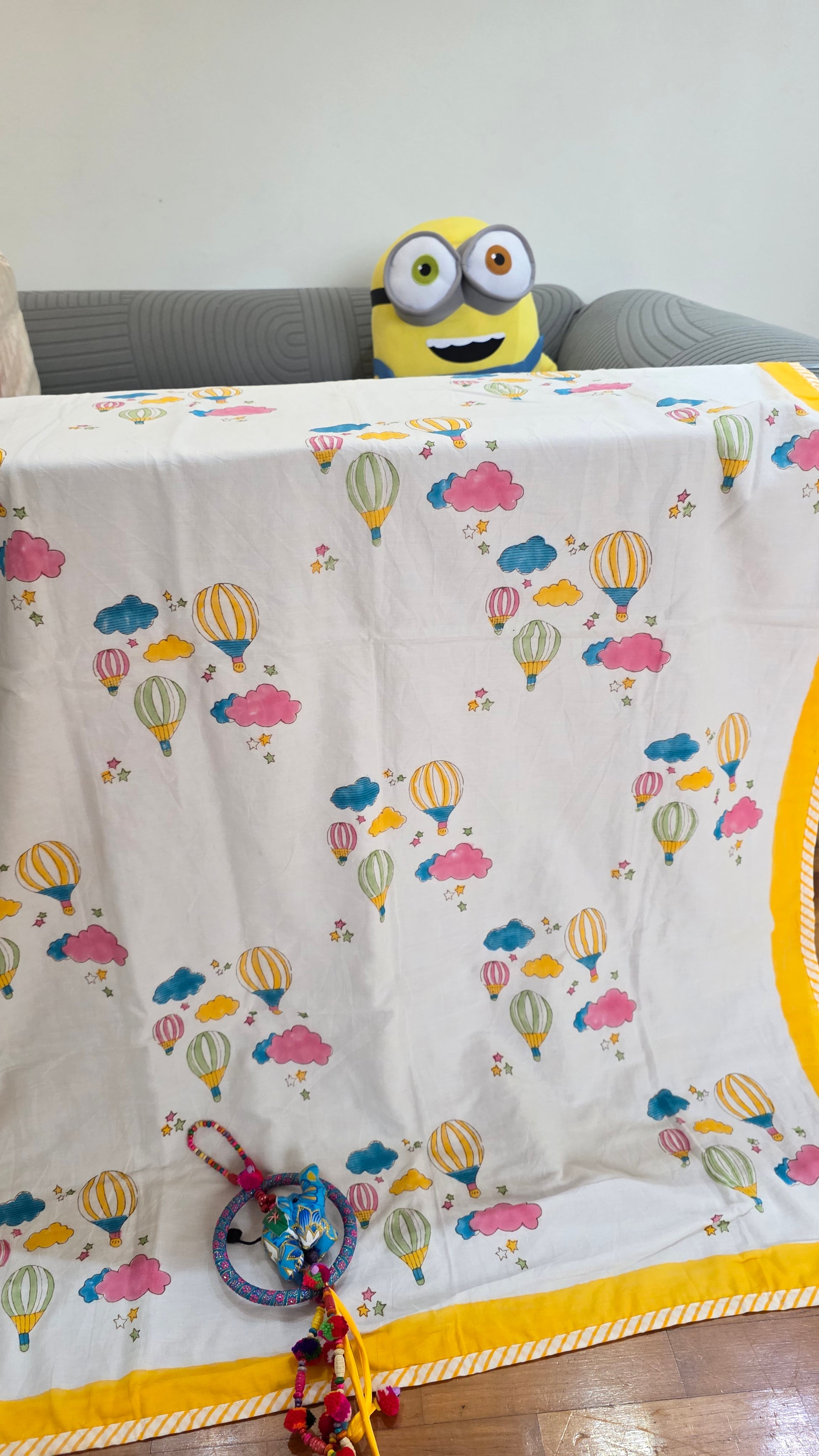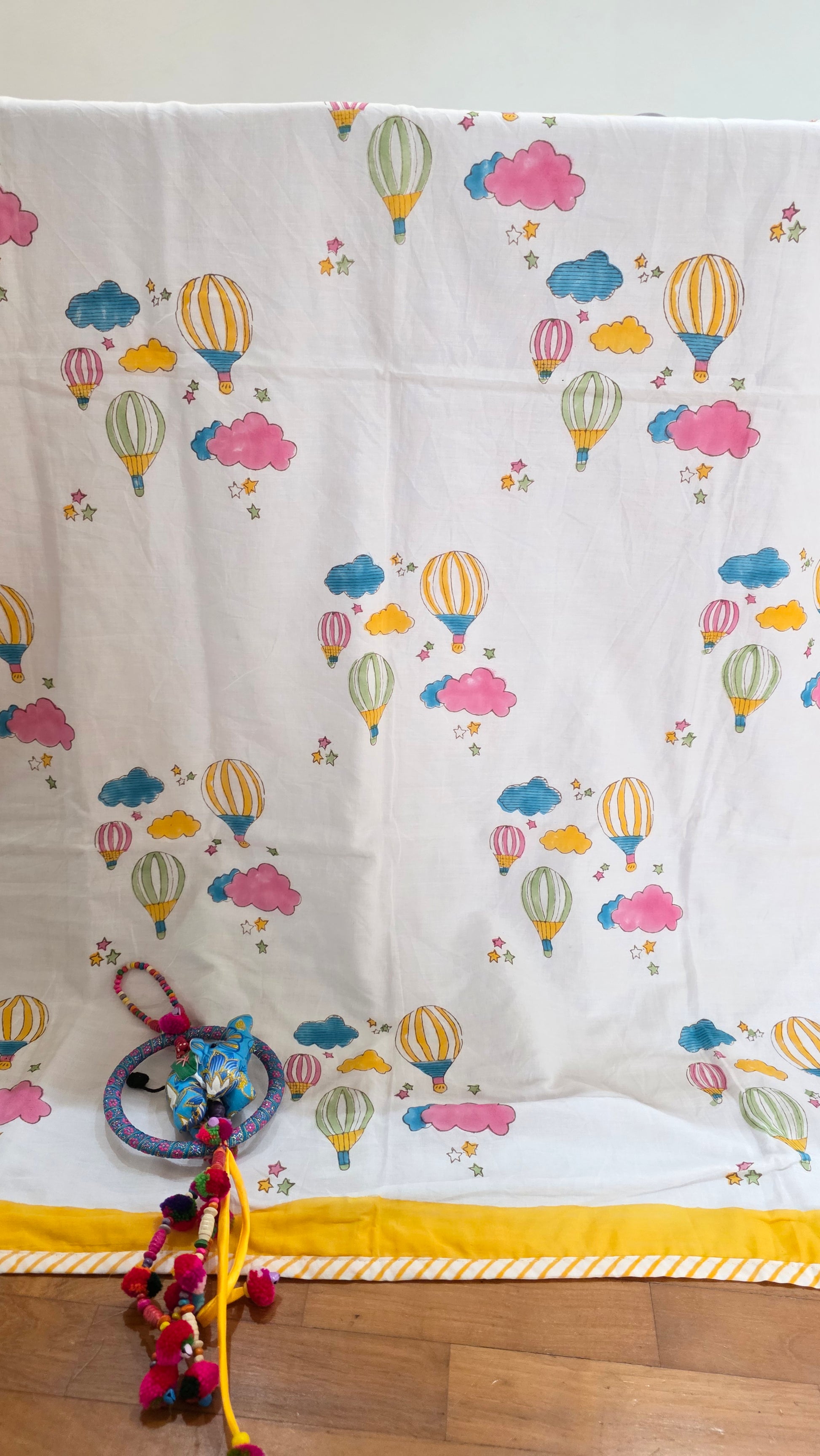 This beautiful dohar is handcrafted by local artisans in Rajasthan, India, using traditional techniques. It is a perfect addition to your child's bedroom and a thoughtful gift for any occasion.