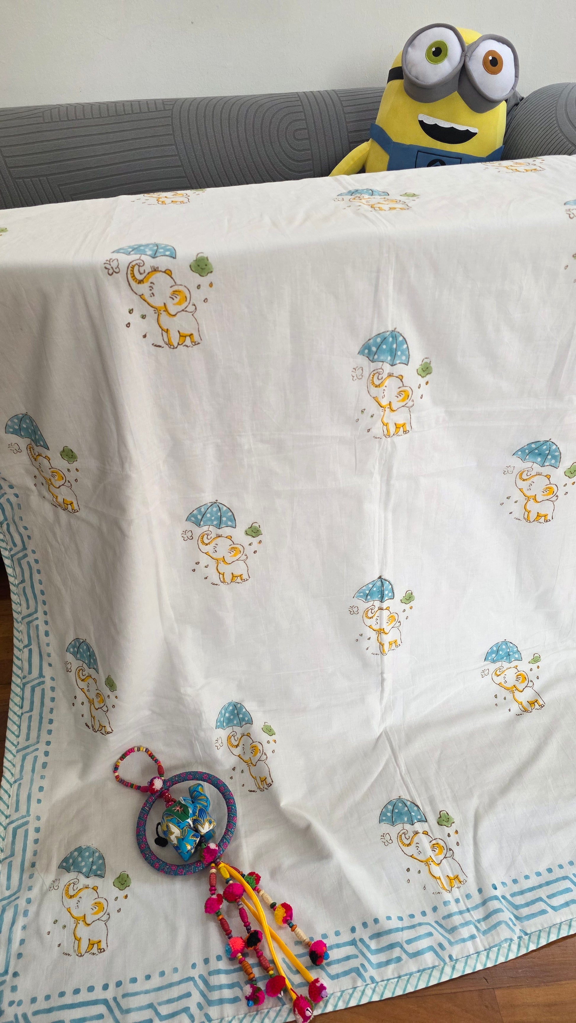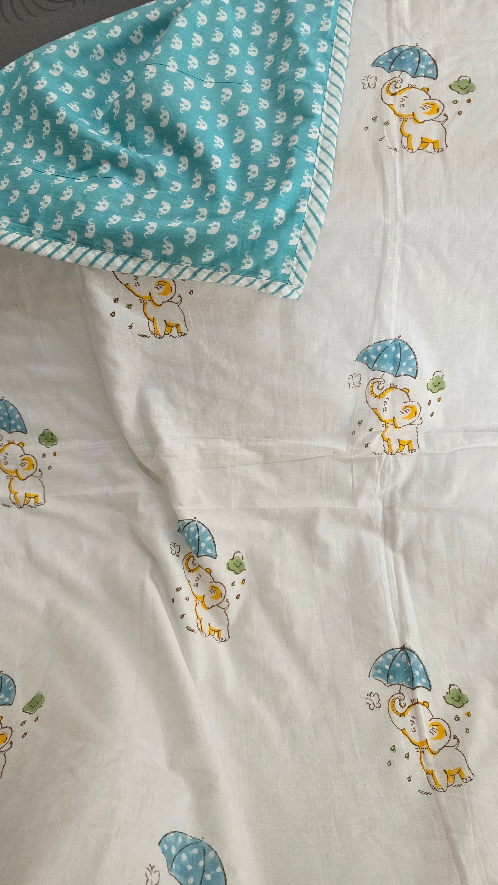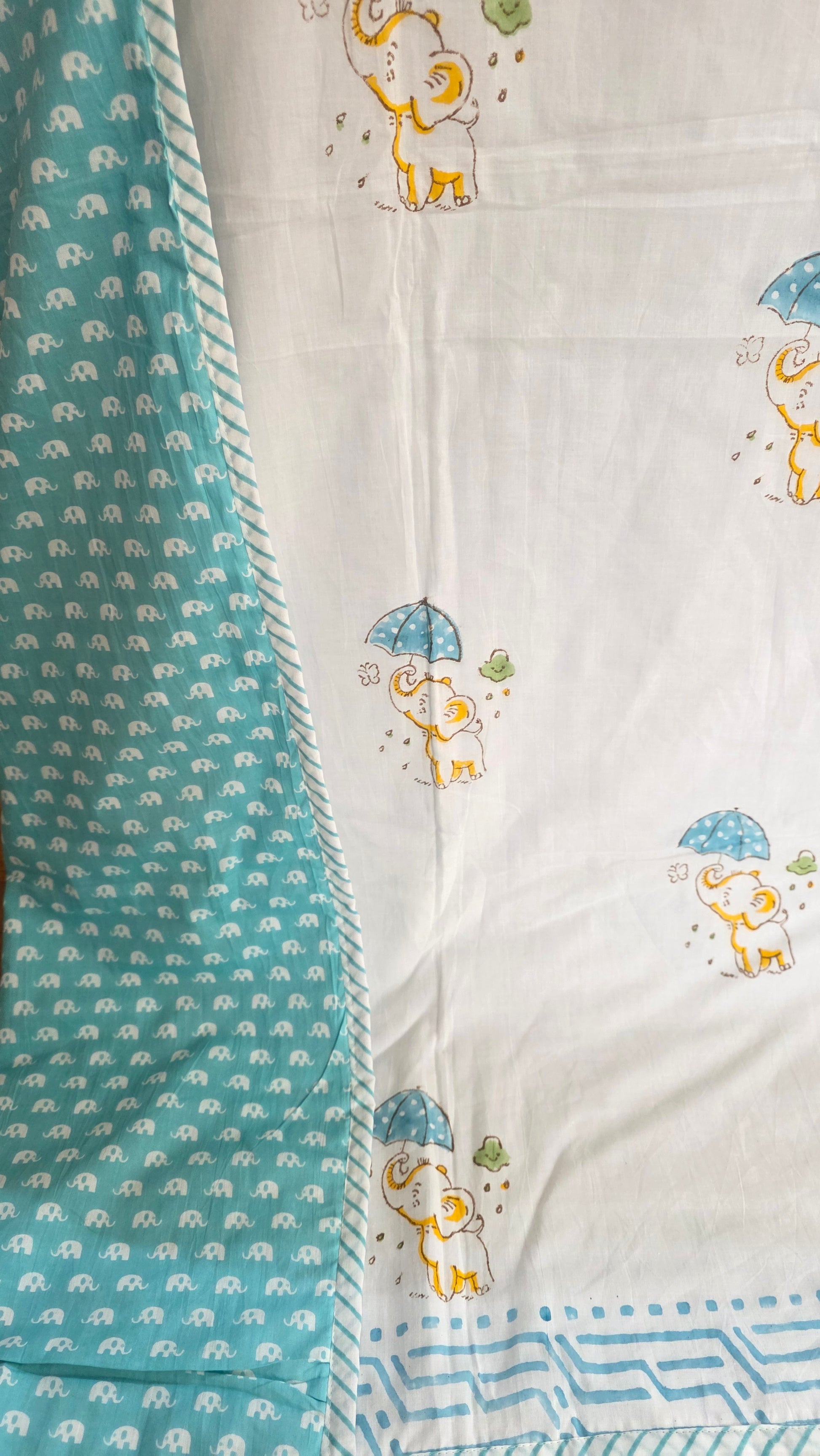 This adorable reversible dohar is made with pure mulmul cotton and features hand block prints in vibrant colors.